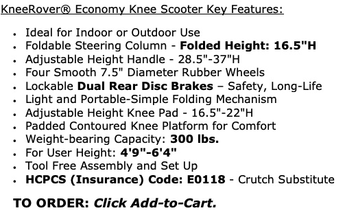 Knee Walker Scooter - KneeRover ECONOMY - 300 lb. Capacity