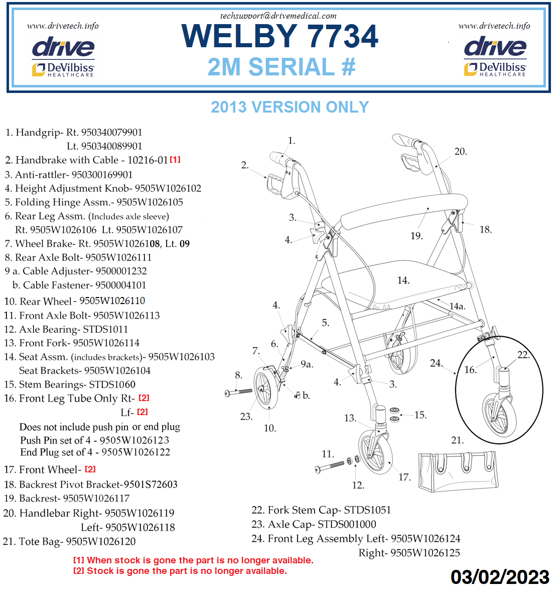 PARTS LIST - Welby 7734 Walker Rollator (US/CANADA)