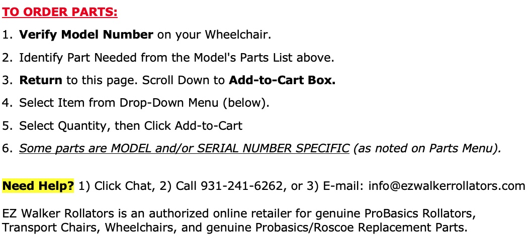 PARTS LIST - ProBasics K4 LT - Lightweight Wheelchair
