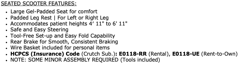 Seated Knee Scooter Rental-Immobilized Leg User